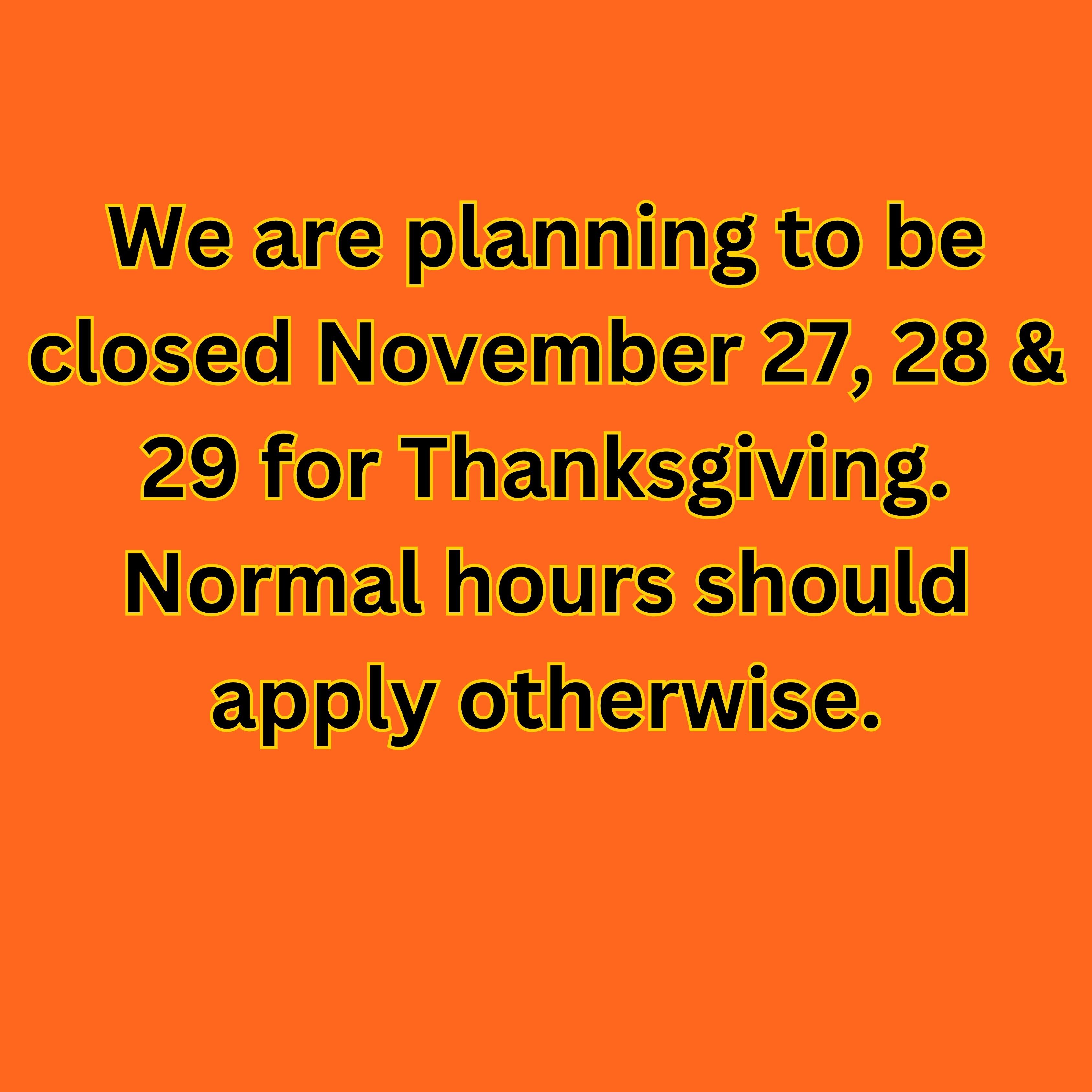 * Holiday & cold/bad weather hours will differ than the hours listed here. We strive to maintain our regular business hours, but severe weather conditions (and other unforeseen circumstances), may affect our ability to do so.